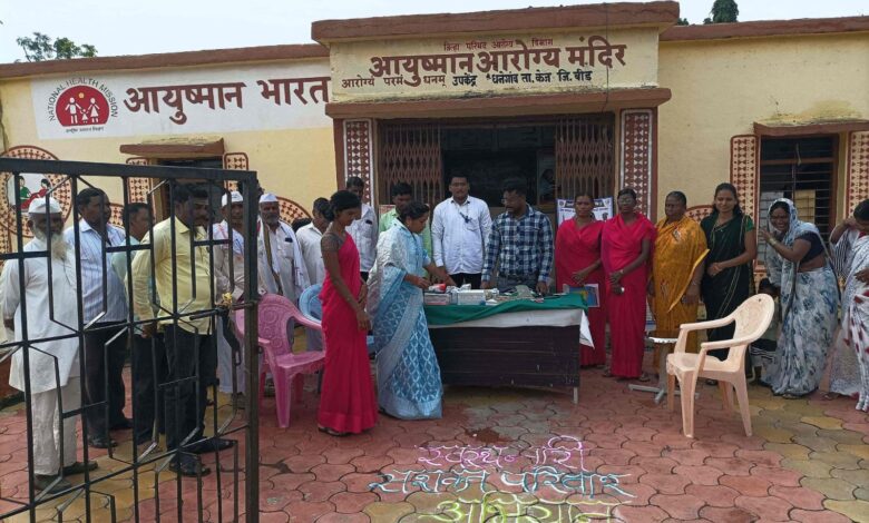 स्वस्थ नारी,सशक्त परिवार अभियानांतर्गत आरोग्य वर्धिनी केंद्र, धनेगाव येथे आरोग्य तपासणी शिबिराचे आयोजन करण्यात आले.शिबिराचे उद्घाटन गावच्या सरपंच आकांक्षा गुजर यांच्या हस्ते संपन्न झाले.