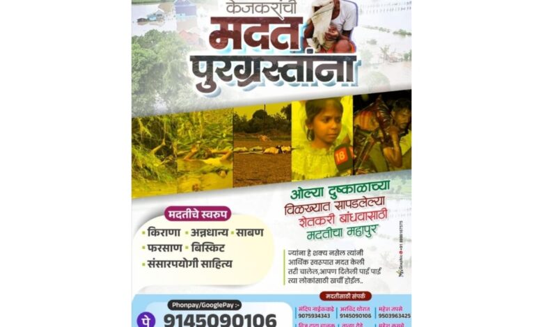 मराठवाड्यातील पूर ग्रस्तांसाठी मदतीचे आवाहन,केजकरांकडून पुन्हा मदतकार्याची चळवळ सुरु