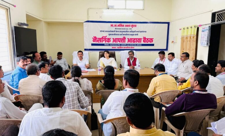 केज तालुक्यात अतिवृष्टीमुळे झालेल्या नुकसानीच्या बाबत सर्व विभागाच्या कार्यालय प्रमुखांच्या नैसर्गिक आपत्ती आढावा बैठकीचे आयोजन आ. नमिता मुंदडा यांच्या अध्यक्षतेखाली तहसील कार्यालयात सोमवारी दि.29 रोजी करण्यात आले होते. यावेळी आ. मुंदडा या बोलत होत्या.