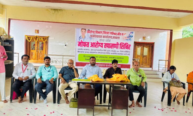 केज तालुक्यातील मौजे साबला आरोग्य विभाग, जिल्हा परिषद ,बीड व ग्रामपंचायत कार्यालय, साबला यांच्या वतीने या मोफत आरोग्य तपासणी शिबीराचे आयोजन साबला येथील सरपंच सौ.जनाबाई नरहरी काकडे यांच्या वतीने करण्यात आले होते.