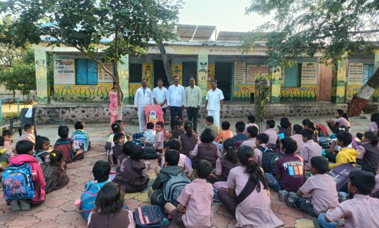 या कार्यक्रमाचे सूत्रसंचालन श्री.आबासाहेब तुळशिराम धपाटे यांनी केले.या शाळेतील प्राथमिक पदवीधर शिक्षक डॉ.रामकिशन मुळे सर यांनी सविस्तर माहिती दिली.शिक्षकांनी आपले मनोगत व्यक्तकेले.यावेळी डॉ.मुळे रामकिशन,श्री संदीप ठोंबरे,श्री राहुल बचुटे, श्री.आबासाहेब धपाटे,श्रीमती भोरे निलावती आनंदराव मॅडम,श्रीमती उटीकर अंजली गोविंद मॅडम, ट्रेनी शिक्षिका रोहिणी काळे, शापोआ कामगार सुवर्णमाला नानासाहेब पवार,विद्यार्थी,विद्यार्थिंनी उपस्थित होते.शेवटी राहुल बजरंग बचुटे सर यांनी आभार मानले.