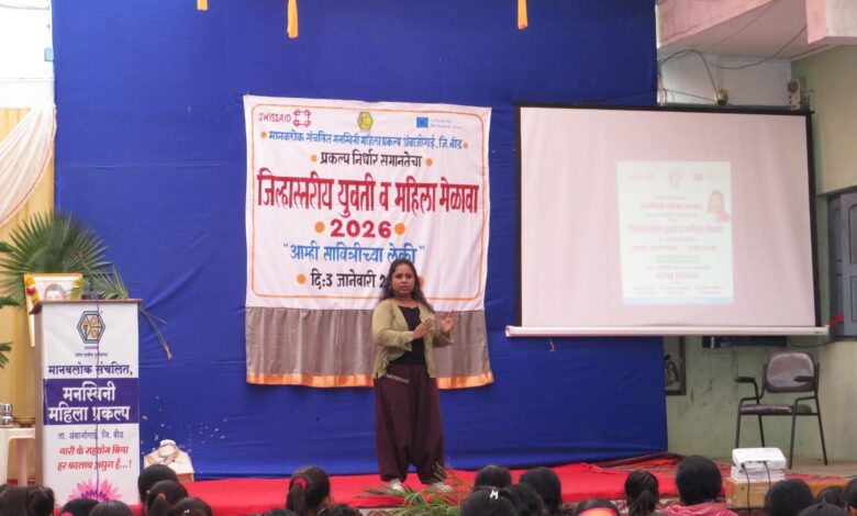 मानव लोक संस्थेच्या वतीने संचलित मनस्विनी महिला प्रकल्पाअंतर्गत अंबाजोगाई येथे युवक व महिला मेळावा उत्साहपूर्ण वातावरणात संपन्न झाला.महिलांचे सक्षमीकरण, आत्मभान आणि हक्कांची जाणीव निर्माण करण्याच्या उद्देशाने आयोजित करण्यात आलेल्या या मेळाव्यास युवक युवतीं सह महिलांची मोठ्या संख्येने उपस्थिती होती.