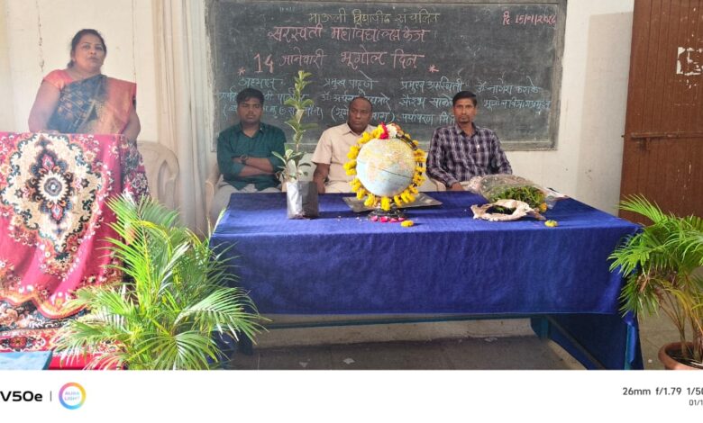 माऊली विद्यापीठ केज, संचलित सरस्वती महाविद्यालय, भूगोल विभागा कडून भूगोल दिन साजरा करण्यात आला. कार्यक्रमाच्या अध्यक्ष स्थानी प्राचार्य डॉ.जी.बी. पाटील,प्रमुख पाहुणे डॉ. अर्चना वाघमारे यांची प्रमुख उपस्थिती होती सौरभ साळवे (पर्यावरण मित्र),डॉ.नागेश कराळे (भूगोल विभाग प्रमुख) यांची विचार मंचावर उपस्थिती होती.