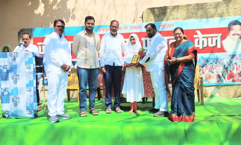 जय भवानी कन्या शाळा येथे नगरपंचायत केज च्या वतीने मान्यवरांच्या हस्ते विद्यार्थिनींना बक्षीस वाटप संपन्न,ज्येष्ठ नेते डॉ.हारूणभाई इनामदार, नगराध्यक्ष डॉ.सौ. सीताताई बनसोड व रणजीतदादा आडसकर यांची व्यासपीठावर प्रमुख उपस्थिती