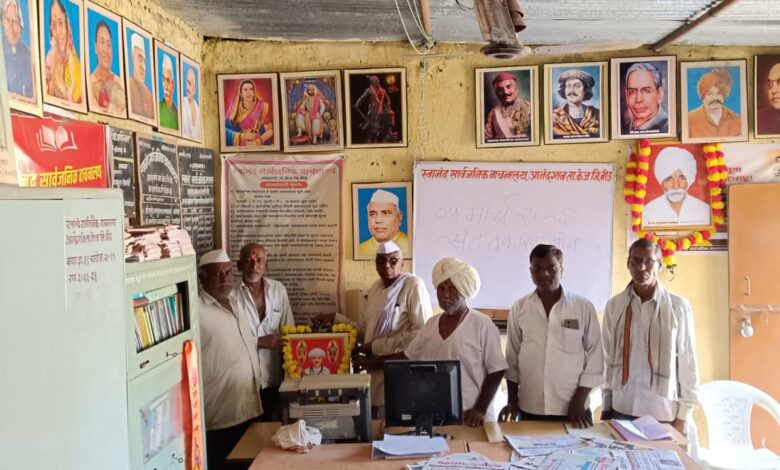 स्वानंद सार्वजनिक वाचनालय,आनंदगांव ता.केज जि.बीड येथे दिनांक ५ मार्च २०२६ रोजी संत तुकाराम बीज गाथा प्रवचन,गाथावाचन करून साजरी करण्यात आली.सर्वप्रथम संत तुकाराम महाराज यांच्या प्रतिमेला पुष्पहार अर्पण करून पुजन व वंदन करण्यात आले.त्यानंतर ह.भ.प.नारायण भाऊ गायकवाड यांनी संत तुकाराम गाथेतील अभंगावर प्रवचन दिले. त्यानंतर गाथा वाचन माजी सरपंच रामराजे गायकवाड, रावसाहेब जाधव,एस.के.वैरागे यांनी केले.प्रमुख पाहुणे म्हणून बन्सीनाना गायकवाड,रामदास राऊत,अरुण गायकवाड, बाळासाहेब गायकवाड यांची उपस्थिती होती.
