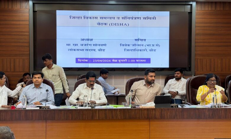 बीड येथे जिल्हा विकास समन्वय व संनियंत्रण समिती (दिशा) बैठकीचे खा.बजरंग सोनवणे यांच्या अध्यक्षतेखाली आयोजन करण्यात आले. केंद्र सरकारच्या कोट्यवधींच्या निधीतून राबवल्या जाणाऱ्या योजनांचा लाभ सर्व सामान्य नागरिकांपर्यंत वेळेत,पारदर्शकपणे आणि प्रभावीपणे पोहोंचला पाहिजे. विकास कामांमध्ये हलगर्जीपणा,भ्रष्टाचार आणि कुचराई अजिबात खपवून घेतली जाणार नाही,असा स्पष्ट इशारा आज जिल्हाधिकारी कार्यालयात आयोजित दिशा समितीच्या मॅरेथॉन बैठकीत दिला.